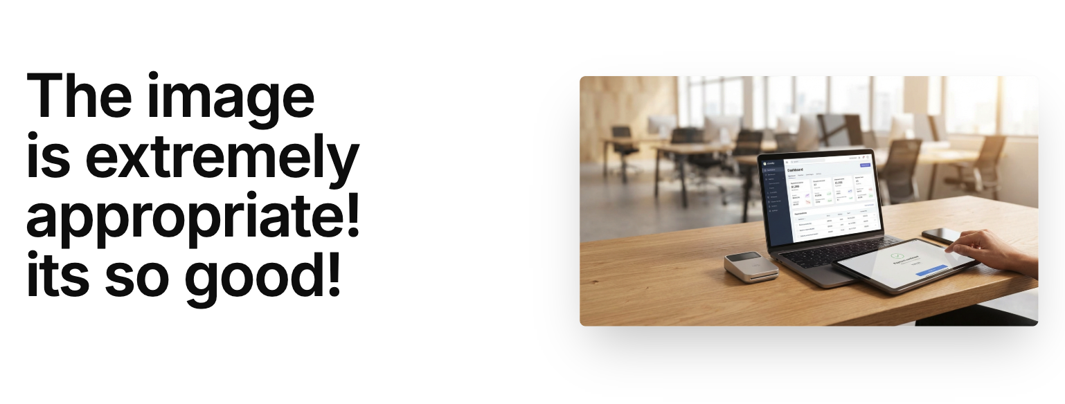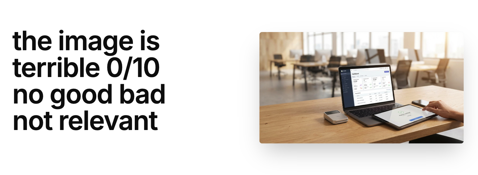 I used a typical “B2B SaaS dashboard on a desk” stock image.